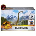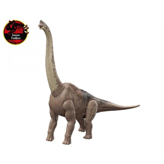 All the excitement and action at your fingertips with Jurassic World: Dominion. This incredibly realistic, movie-inspired brachiosaurus measuring approximately 71cm high and 81cm long features an all-new head. It has greater articulation capacity and its design is identical to that of the character that appears in the film. It has multiple joints in its long and elegant neck. Collectors will love this oversized dinosaur to build their own Jurassic World world. Make this dinosaur COME TO LIFE with an additional digital game with Augmented Reality (AR)! Dare to see how REAL playing with dinosaurs can be! Simply scan the Unhidden DNA code with any smart device to unlock AR experiences in the free Jurassic World Facts app (for Android and iOS). Smart device not included. Colors and decoration may vary.