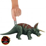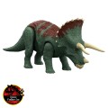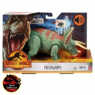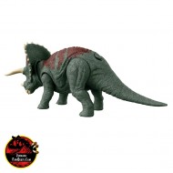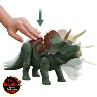 At approximately 13 inches long, this movie-inspired Triceratops Roar Strikers figure will expand the definition of dinosaur fun; Simply press down on the hip area of this action figure to activate a roar sound and head button attack, for realistic battle play; Children get a sensory play experience that can help increase creativity and improve fine motor skills; Watch how playing dinosaurs becomes real! Find the hidden DNA code and scan it with any smart device to launch augmented reality options in the free Jurassic World Facts app (Android and iOS). Smart device not included; AR allows kids to study the dinosaur in the lab with fun visual learning and explore different modes such as thermal and X-ray Then take it to the next level and bring dinosaurs to our world through AR, make the dinosaur appear anywhere room. Runs!; Kids can collect all the Roar Strikers dinosaurs for loud, action-packed play. This Roar Strikers medium-sized dinosaur figure depicts the fan-favorite herbivore, the Triceratops. Not only does it have sound to bring roaring gameplay to life, but also a species-specific head attack. Both are easily activated by pressing down on the hip area. The distinctive-looking Triceratops figure has movable joints, authentic sculpting, and realistic colors and textures for fun action play.