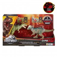 This Epic Attack™ battle pack includes a young Tyrannosaurus Rex and a Pachycephalosaurus, both with THREE LEVELS OF INTENSIFIED DAMAGE.