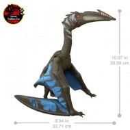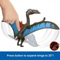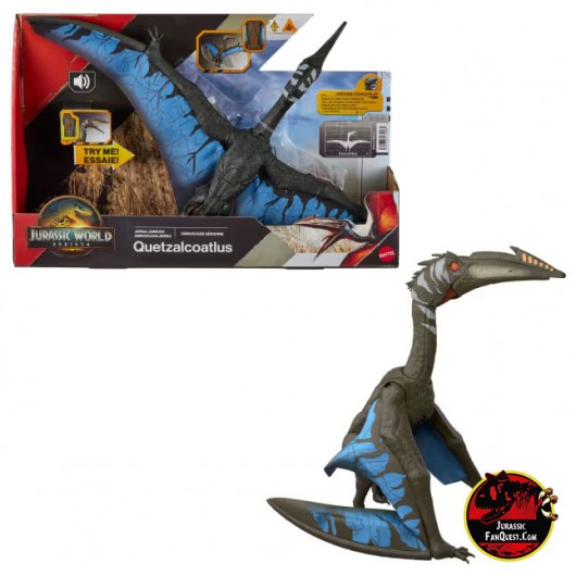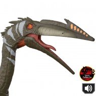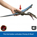 Jurassic World attack! Bring the thrills of Jurassic World Rebirth home with this distinctive Aerial Ambush Quetzalcoatlus action figure with soft goods wings and button-activated chomp and roar!