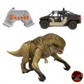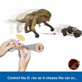 Recreate the excitement and adventure of Jurassic World Rebirth with this versatile Track 'N Chomp Distortus Rex dinosaur with an off-road vehicle and Remote Control! The remote controller can move either the dinosaur OR the vehicle, so there are 3 ways to play! One -- play with the dinosaur on its own; Two -- control the dinosaur figure and chase the vehicle, Three -- control the vehicle to escape the dinosaur!