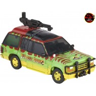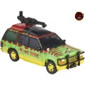 WELCOME…TO JURASSIC PARK: The Tyrannocon Rex figure converts into T. rex mode in 27 steps and the Autobot JP93 figure converts into licensed Ford Explorer mode in 18 steps. Both figures feature deco and details inspired by the Jurassic Park movie