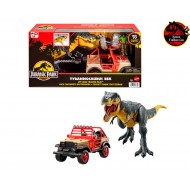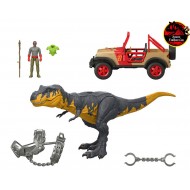 ¡Emoción sin límites! Coloca el equipo de captura al joven T. rex con acción de mordisqueo y coloca a Ray Arnold en el vehículo, ¡pero prepárate para ponerte la armadura si el dinosaurio escapa!
