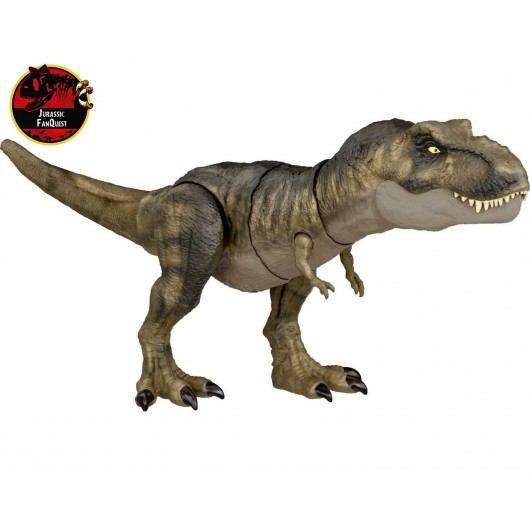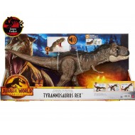 ¡Prepárate para una acción y aventuras emocionantes con Jurassic World Dominion! ¡Esta figura de dinosaurio Thrash 'N Devour Tyrannosaurus Rex™ mide 21 pulgadas de largo y tiene acciones mejoradas para morder y golpear, sonidos de rugido y golpe, y viene con una apariencia marmolizada genial! ¡Presiona el botón en la cola para emitir un poderoso RUGIDO! Levante la cola y el T. rex se inclina para elegir figuras de acción de dinosaurios o humanos de 3,75 pulgadas. ¡Mueve la cola hacia abajo y se traga enteras las figuras humanas! Luego manipula la cola para crear espectaculares movimientos y sonidos. Otras figuras se venden por separado Es una adición imprescindible a cualquier colección de juguetes de dinosaurios y permite a los niños recrear escenas clave de la película o usar articulaciones móviles para posar en una exhibición feroz. ¡Dale VIDA al T. rex con un juego digital extendido usando Realidad Aumentada! ¡Atrévete a ver cómo se puede llegar a jugar con dinosaurios REALES! Simplemente escanee el código de ADN oculto con cualquier dispositivo inteligente para desbloquear las experiencias de AR en la aplicación gratuita Jurassic World Facts. Dispositivo inteligente no incluido. Es un gran regalo para los amantes de los juegos de acción con dinosaurios a partir de 4 años. Los colores, dimensiones y decoraciones pueden variar.