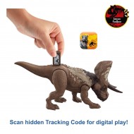 ¡Juego conectado! Escanea el código de seguimiento oculto del dinosaurio en la aplicación gratuita Jurassic World Facts con un dispositivo inteligente compatible (no incluido) para iniciar actividades y juegos de REALIDAD AUMENTADA.
