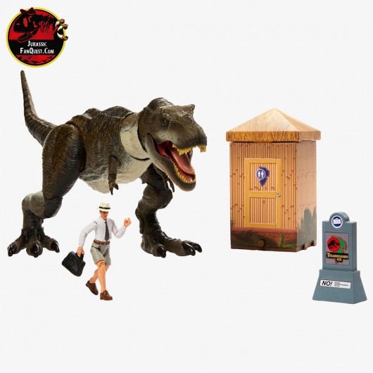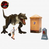 Capturamos la icónica escena en este set que incluye el T. rex más amenazante y detallado que hemos creado hasta la fecha, una figura de Donald Gennaro altamente articulada y una letrina destructible con luces y sonidos, lista para ser destruida. Los colores y la decoración pueden variar.