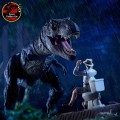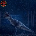 El T. rex Deluxe está altamente articulado con gotas de lluvia decorativas en la piel, ojos de cristal premium, lengua articulada y tendones de mandíbula elásticos.