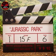 Viene en un empaque conmemorativo de Jurassic Park que es una claqueta funcional.