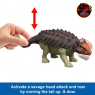 ¡Ataque y rugido! Inspirado en Jurassic World Rebirth, este juguete Ankylosaurus Rugido Salvaje tiene un agresivo ataque que puede cambiar de dirección, ¡y un rugido feroz para un emocionante juego de dinosaurios!
