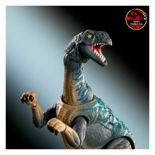El Mussaurus cuenta con 15 puntos de articulación y pies frontales intercambiables que permiten recrear poses naturales de este dinosaurio bípedo.